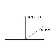 From this equating, you can see that we still use the Ambient light, but need two more variables for describing the color and intensity of the Diffuse light, and two vectors N and L for describing the light direction L compared to the surface normal N.