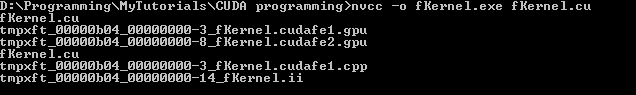 Now, save the file as “fHost.cu”, compile the code as we did in the previous tutorial by typing the following command:![]()
