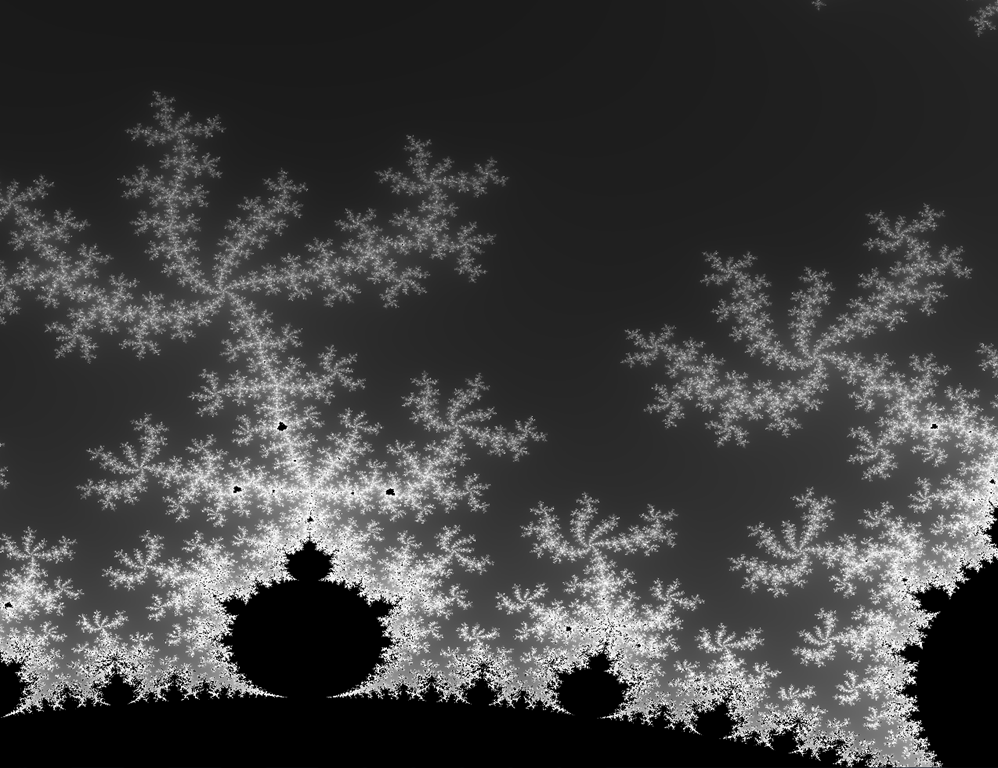 We can see that our fractal becomes more and more detailed for every iteration we take. Normally, a really detailed Mandelbrot set requires a huge amount of iterations. The image you see above is the set all complex numbers c that produces a finite orbit of 0. If the point is not in M, it will explode (outside of –2 to 1 R, or –2 to 2 i).