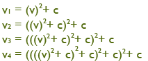 Here, we calculate our point v with the previous content of v as the input, and then we add C. Can you see what function this is?
