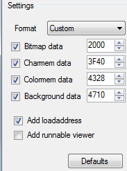 That’s it for loading the image. One final thing remains, and that is to include our image file and put it into the memory. When we exported, we specified that we wanted to have the image at the memory location $2000. Now, a PRG file got a header that is 2 bytes long. That means that we want to include the file in location $2000-2 bytes = $1FFE: