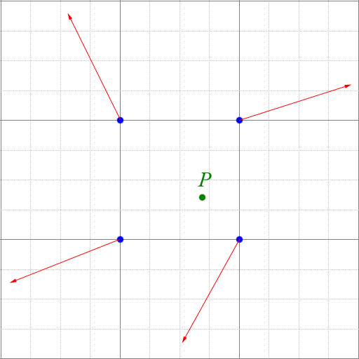 Also, we need the vectors from each grid point to point P, let’s call them gP: