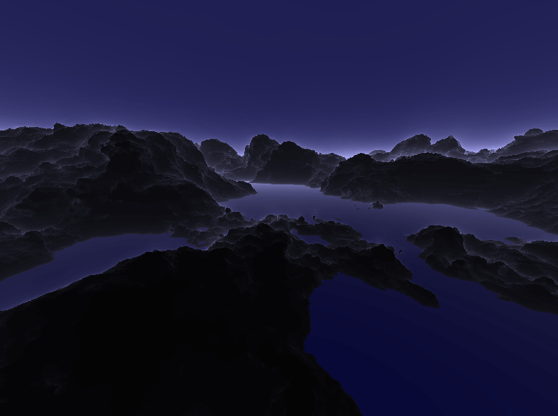 As you can see, after only 8 octaves, the landscape is getting very interesting. You can play with the parameters for each layer, like amplitude, to create a mystical, evil looking landscape.