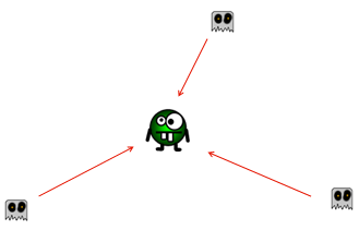 All the enemies active in the game should move towards the players location. If the player moves, the target to where the enemies are moving should be updated. This will make the enemies follow the player.