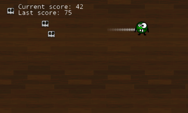 spriteBatch.DrawString(font, "Last score: " + player.LastScore, new Vector2(80, 35), Color.White);