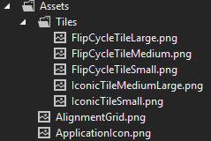 Next, we must change the Applications Tiles (the icon/tile the player sees on the phone). Go to the Assets folder of the exported solution (not in the Unity solution) and edit the files you see there (don’t change the resolution):
