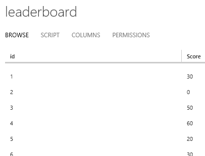 Now we are going to use the new package to connect to our service and insert new score items to our service. We also need to make sure that our table contains the right columns.