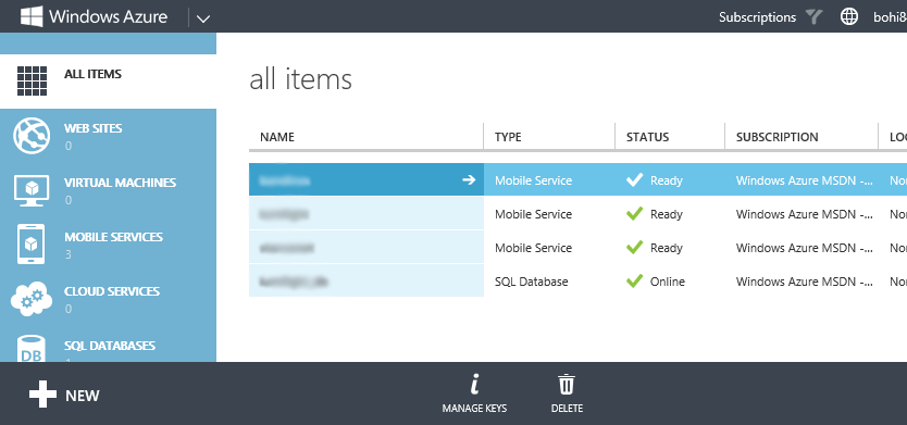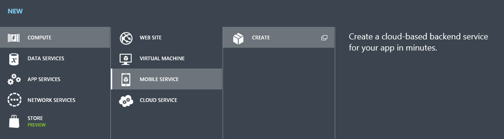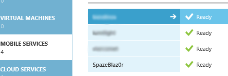 We want to create a new Mobile Service, so go ahead an click the Mobile Serivces tab: