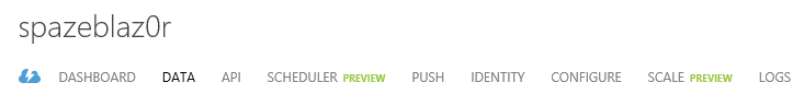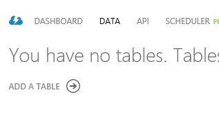 In this step, we are going to create the data table that our service will be using. Click the DATA button in the menu bar: