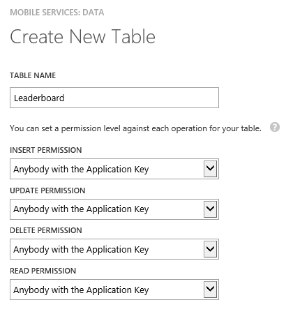 The service is set to automatically add new columns based on what we insert to it. This is great when we build the app, but it’s good practice to turn this setting off when we publish the game (for security reasons).