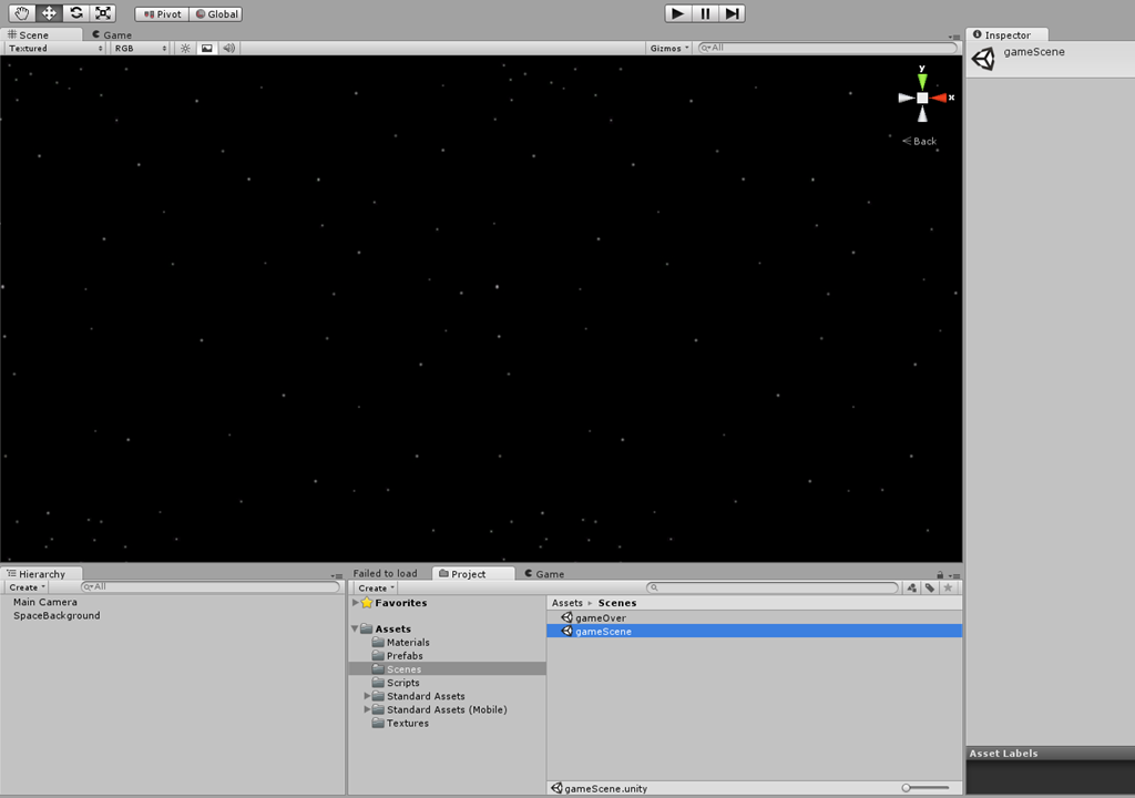 The game will be in space, so we will need a black backdrop with some stars on it. We are going to need many textures so lets create a folder that will contain all of them. Right-click the Assets folder on the Project tab and click Create->Folder and name it Textures.
